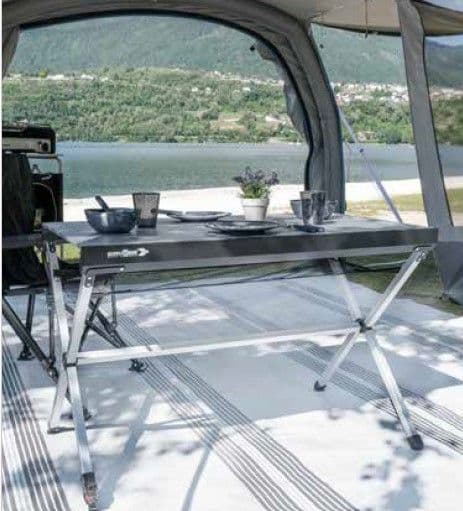 The Brunner Titanium Axia 2 Table is a lightweight aluminium table with high-quality silver anodised slatted table top that locks into place for a sleek gapless surface. This 2 person table has easy to mount aluminium tubing frame with a 30kg weight capacity.