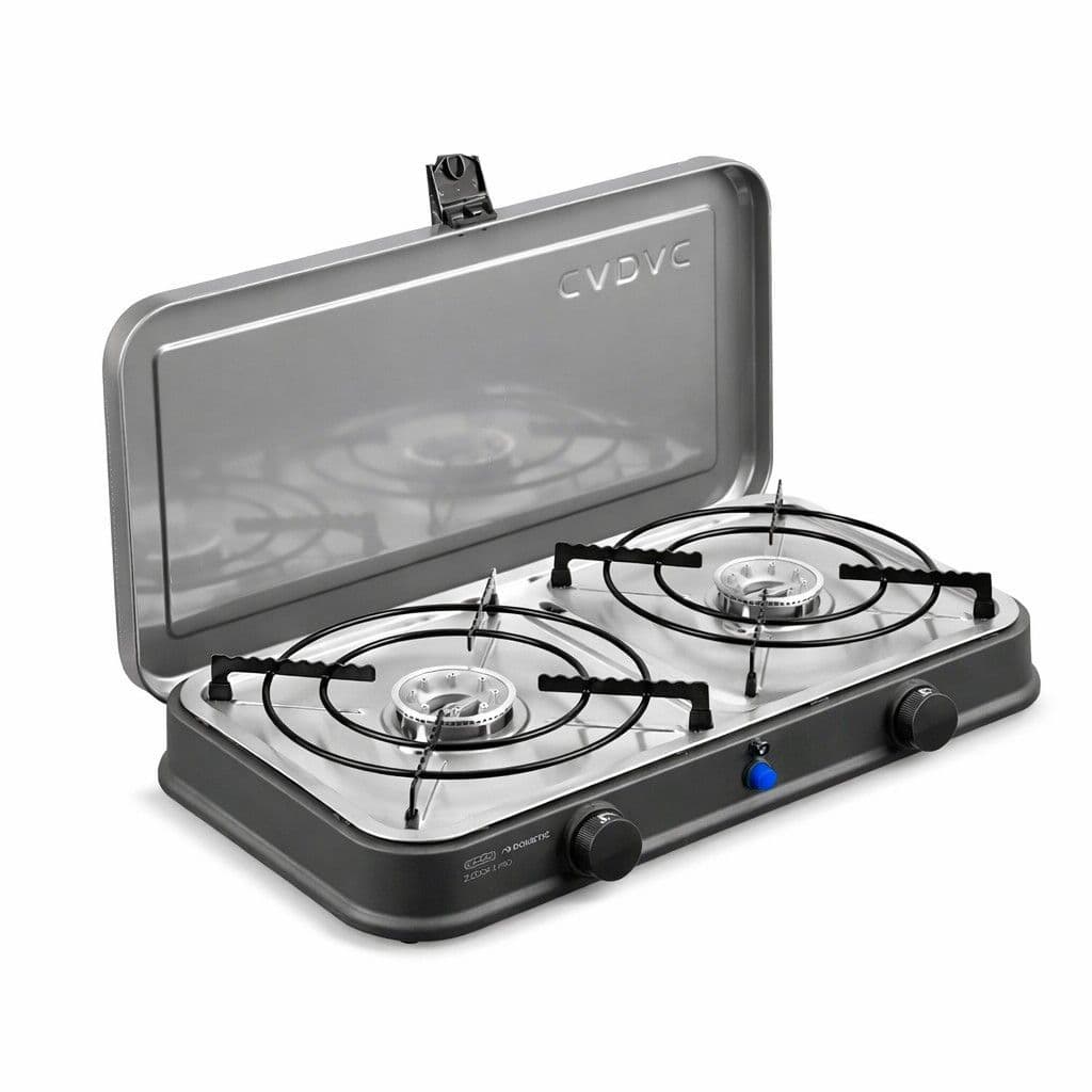 The Cadac 2 Cook 2 Pro Stove QR is a cracking little tabletop stove that punches well above its size. Compact, stylish and perfect for campervan cooking, it has 2 independent burners and simple push button piezo ignition, to give you full control whether you are boiling, frying or simmering.