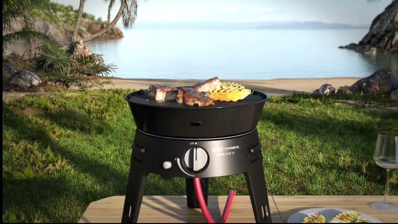 The Cadac Safari Chef 30 Pro QR is a compact, all-in-one, gas BBQ, grill and cooker that has a quick release coupling compatible with all Cadac QR regulators allowing use with all types of Gas from compact disposable cartridges up to larger butane and propane refillable cylinders.