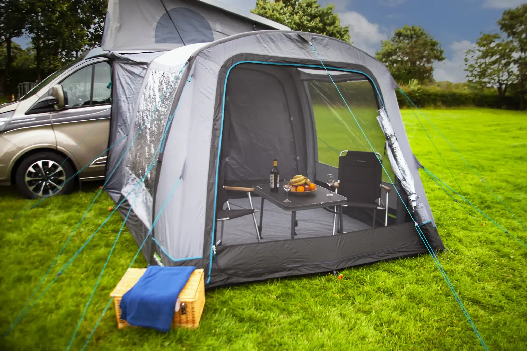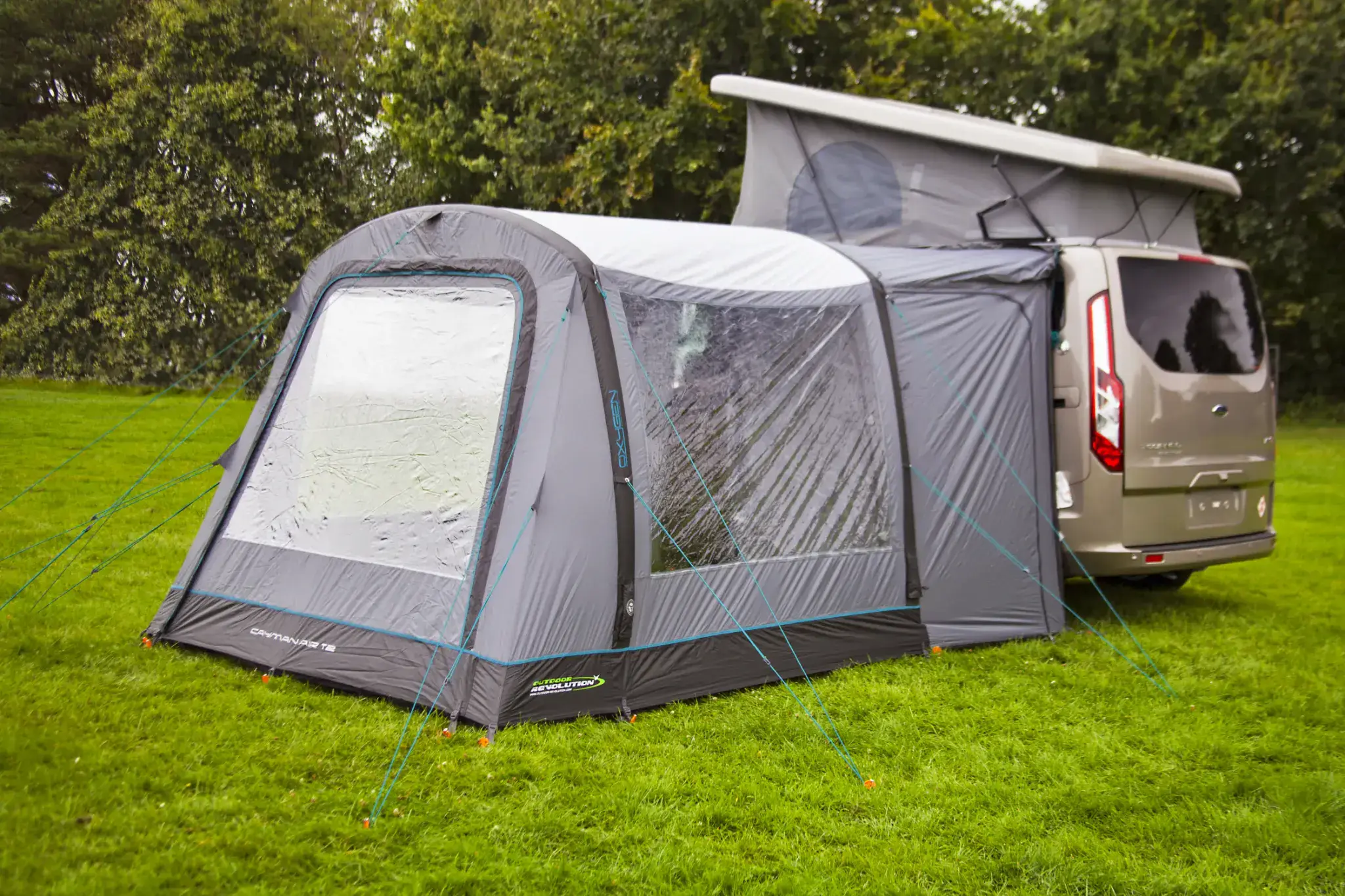 The Outdoor Revolution Cayman AIR T2 Drive-Away Awning HIGH is a medium size awning which is very quick to inflate and easy to connect to a Motorhome sized van. The Cayman T2 awning offers a good-sized living/storage area and has the option to clip in a 2 person bedroom (optional extra) and includes a FREE footprint groundsheet protector to protect the awnings sewn-in groundsheet & Twin Drive-Away Kit connector.