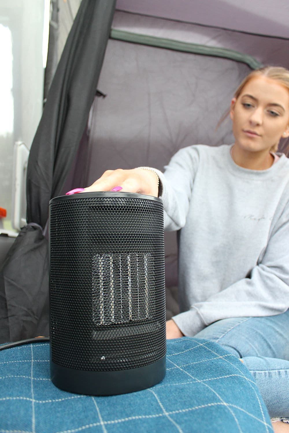 The Electric Eco Heater from Outdoor Revolution is a plug-in fan heater designed to quickly warm smaller spaces such as campervans or drive-away awnings. With a digital display for easy operation this heater runs off 240V mains power and offers both warm/cool air outputs and doubles as a 70° oscillating fan to optimise air circulation in summer.