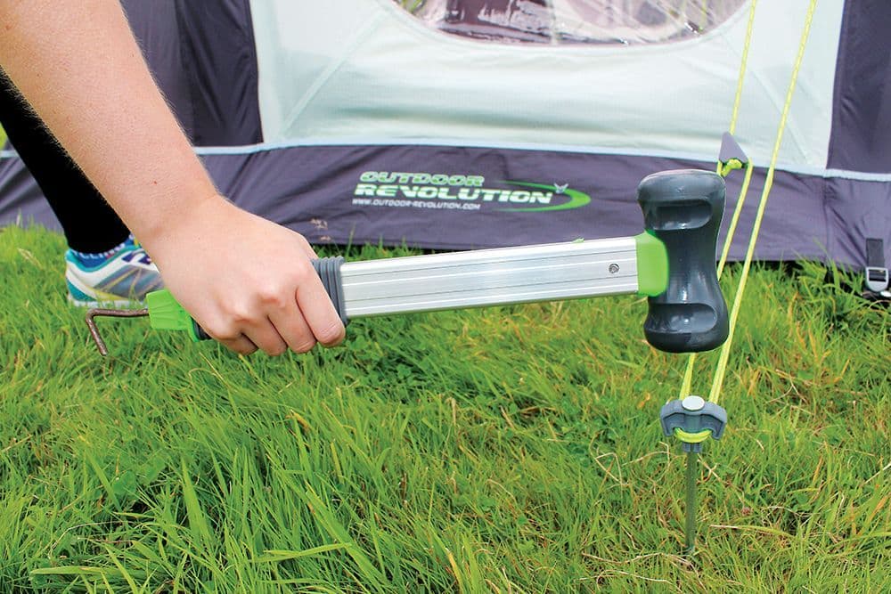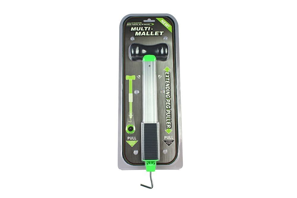 The Outdoor Revolution Multi Mallet is a strong multi-purpose rubber mallet with an ergo grip handle for banging pegs into hard ground. The aluminium shaft of the mallet handle can be extended for pulling pegs, helping to prevent back-ache typically caused by bending over when extracting pegs.