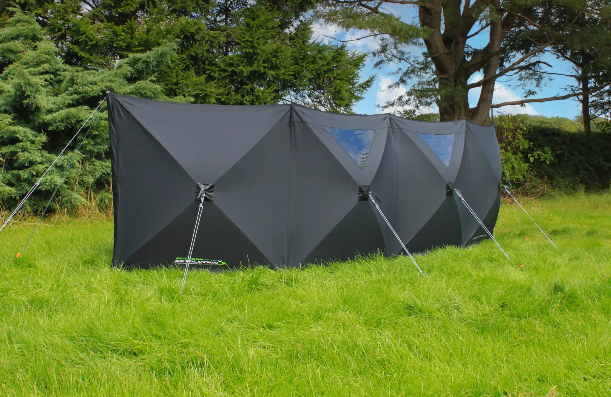 This innovative windbreak design creates an instant strong shelter in windy conditions, a must for cooking outdoors, and also offers privacy on busier campsites. If you still want a view out there are windows on the central panel and a storage bag, guylines and steel peg set are all included.