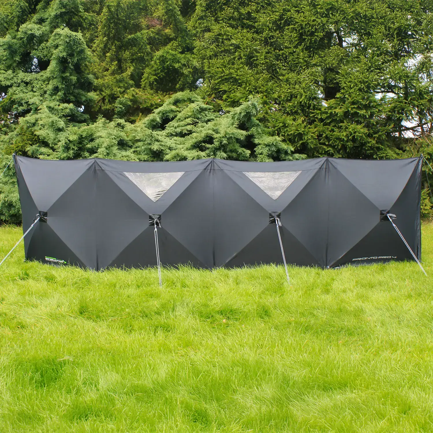 The Outdoor Revolution Pronto PRO 4 Panel Windbreak uses a high performance 600HD fabric with a easy pitch design and compact storage making it an ideal windbreak for campervans. The Pronto Pro has a sleek black design with sectioned fibreglass upright poles at either end for extra strength & stability with the main frame using the pop-up ‘Pronto’ pitching system.