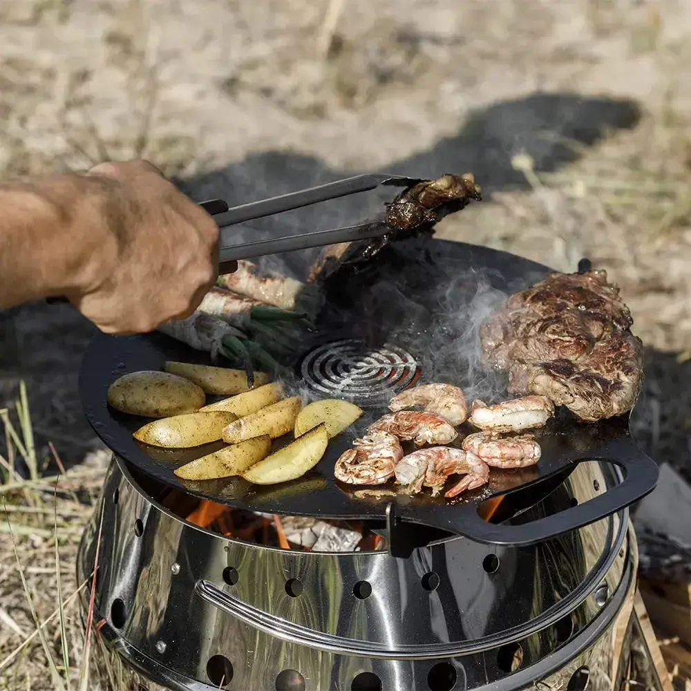 Made of 3mm thick oiled steel the grill is designed to get to heat very quickly with a natural non-stick effect thanks to the patina formation.