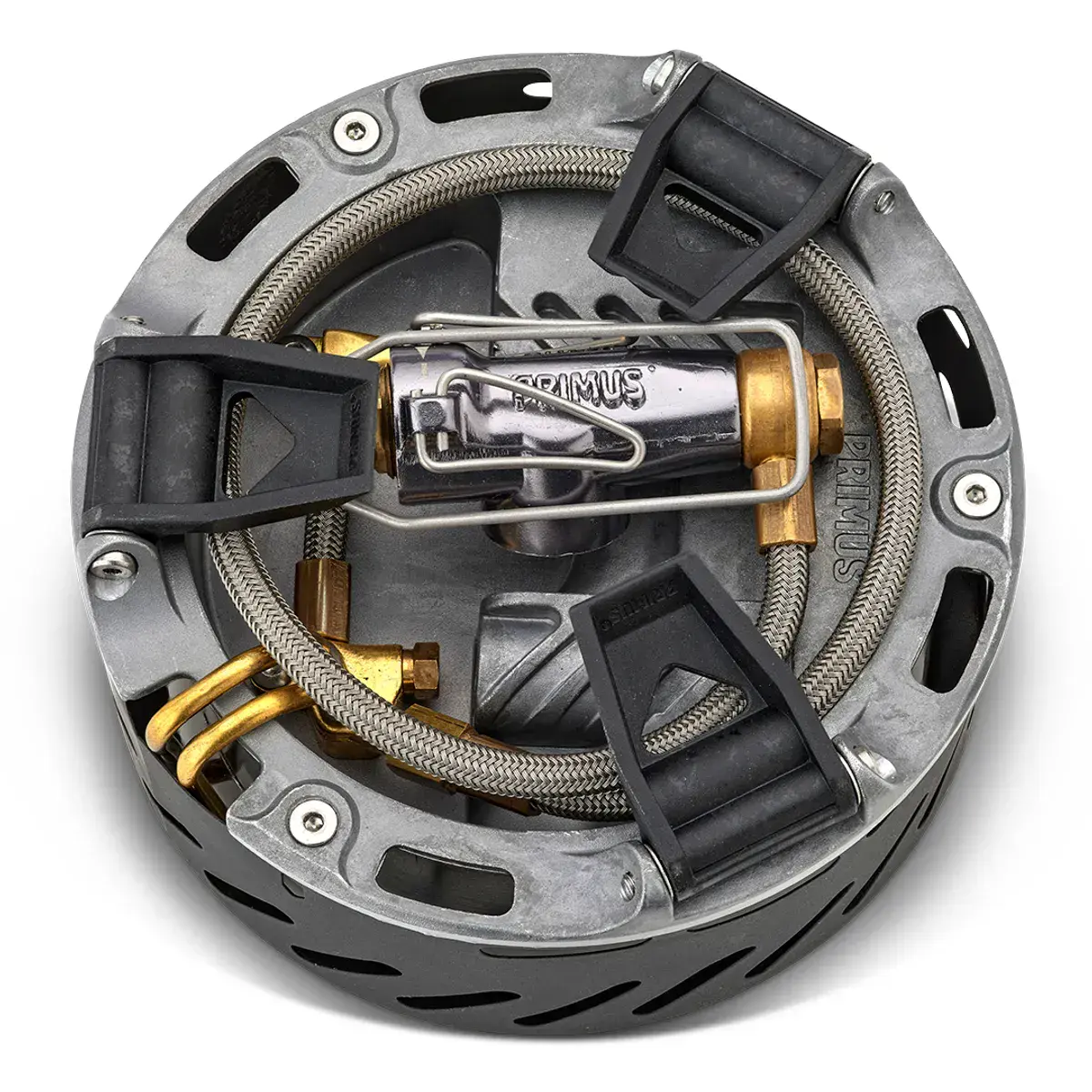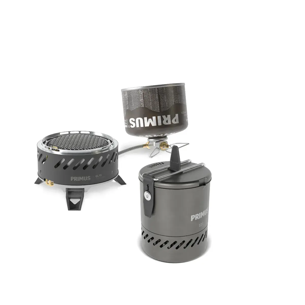 The Primus Ulti Stove system is the perfect size for 1-2 people and when finished cooking, the powerful burner legs hold the hose and valve into the base of the burner and then easily packs back into the pot. Place the lid on and fold the handle over to lock the system together for a rattle-free, packable kitchen. Packed all together, this offers a protective shell for the burner.