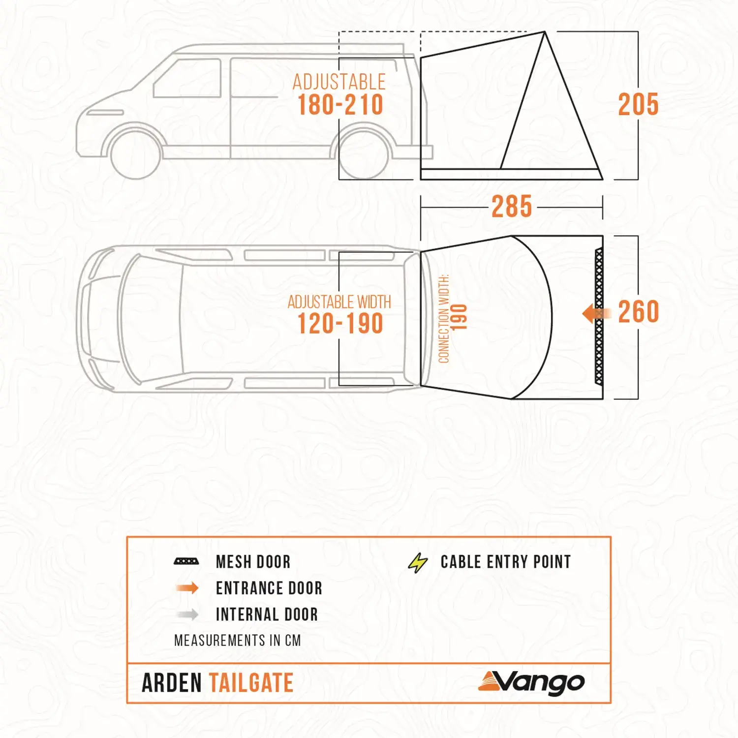 Compatible with both tailgates and barn doors the Arden uses Vango’s lightweight 75D Sentinel Active fabric with a clip-in groundsheet that can be removed depending on ground conditions.