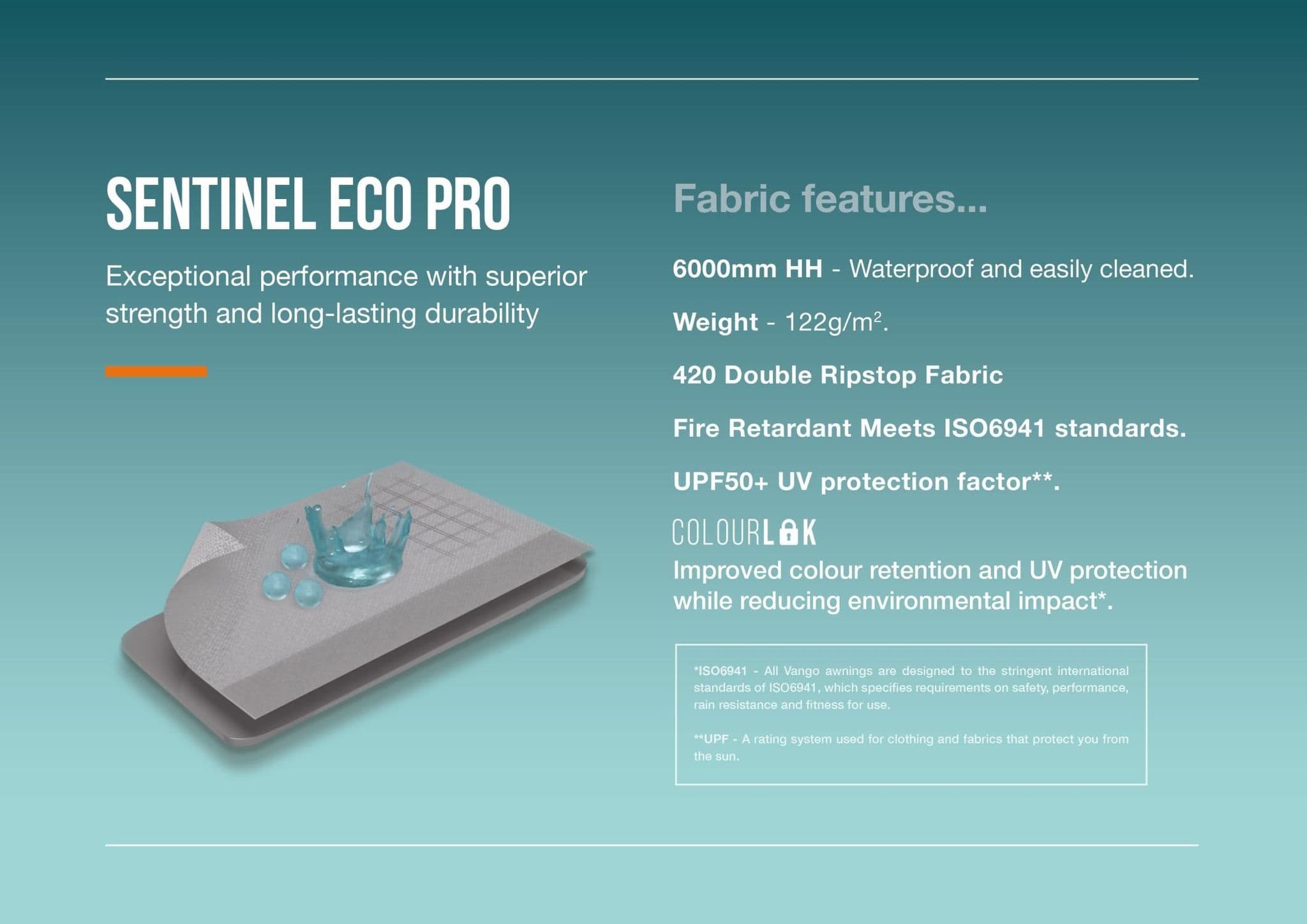 - Sentinel Pro 420 Fabric - The 420 denier double rip-stop threads we weave into Sentinel Pro provides an incredibly strong fabric that will withstand a great deal of punishment from the sun, wind and rain. The high-density base fabric, combined with PU technical coatings make Sentinel Pro a market leader in terms of waterproofness and longevity