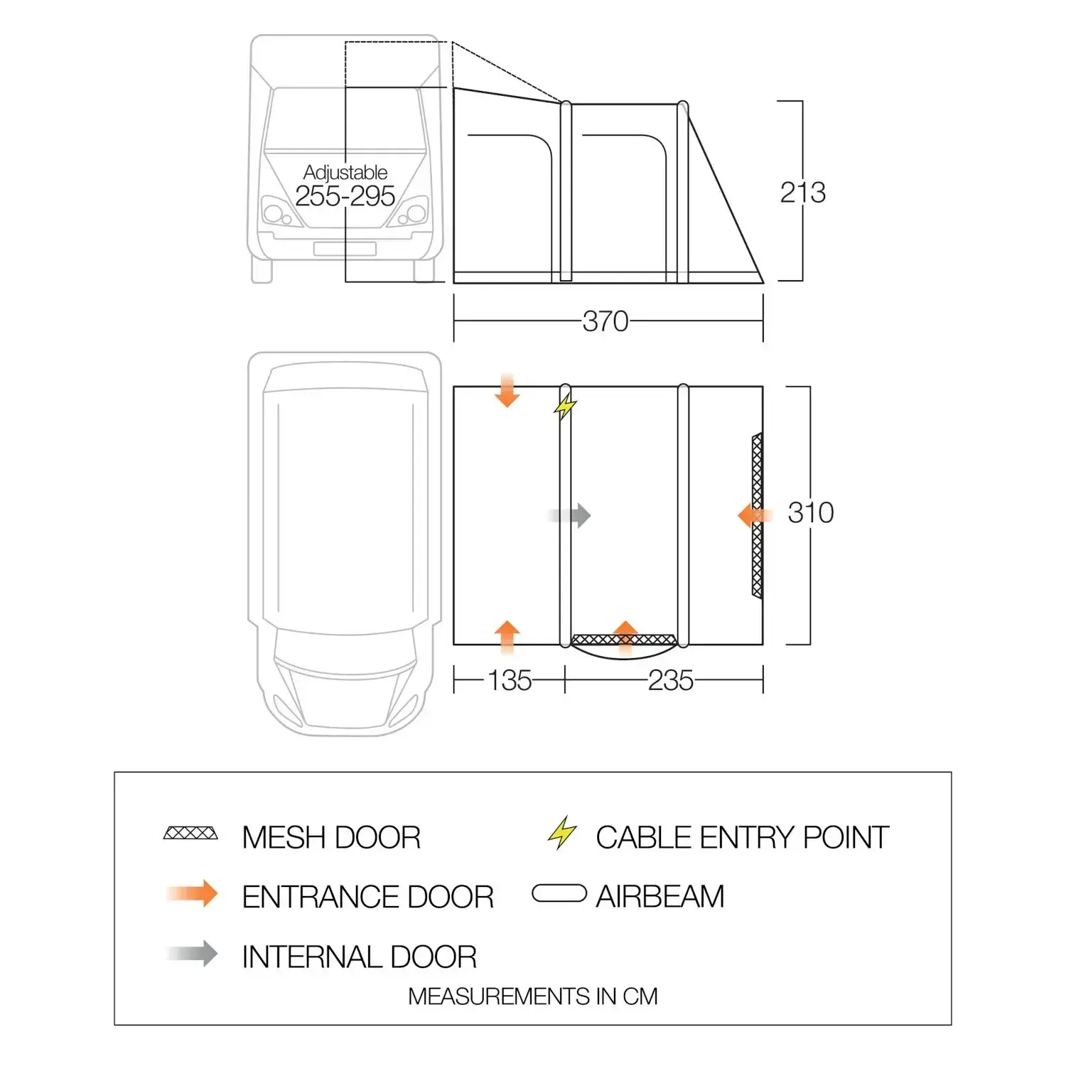 Connect to C-Channel Rails, Multi Rails and into all sizes of Windout Awnings including Fiamma, VW, Thule & Dometic.