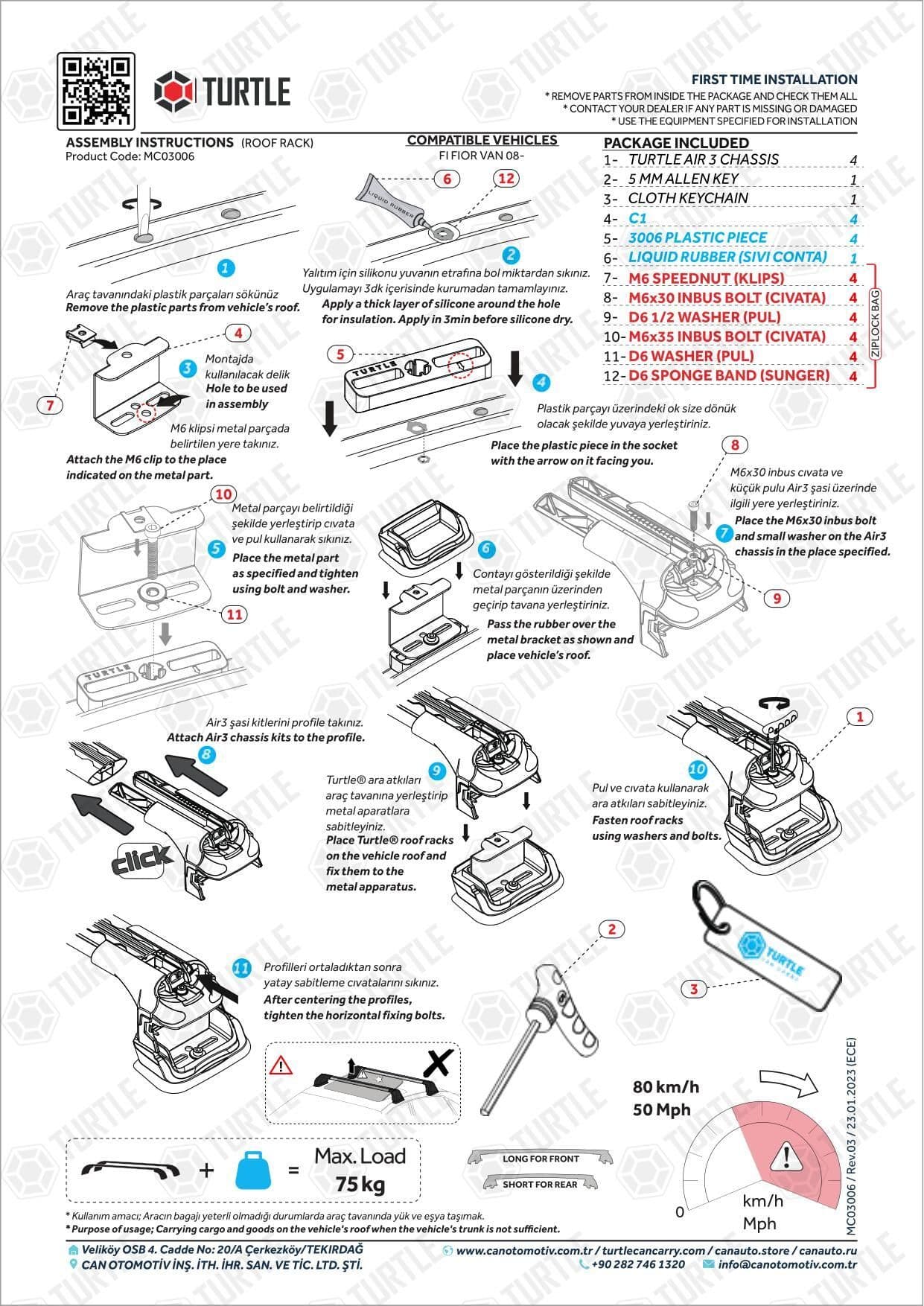 The AIR 3 roof rack can be fitted in minutes and has a lockable T-track system compatible with many other brand accessories on the market. The aerodynamic shape of the bars helps reduce wind noise and reduce fuel consumption and are TUV approved.