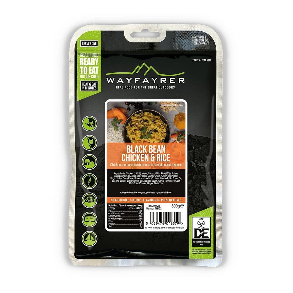 This exciting new meal from Wayfayrer is easy to heat in boiling water and in minutes you'll have a quickly prepared Black Bean Chicken & Rice. Wayfayrer's roots can be traced back to the ration packs supplied to the British military whilst on manoeuvres. A delicious Wayfayrer meal will sustain you no matter what you’re doing, whether you’re up a mountain, camping, hiking, cycling or just anywhere where there’s a hunger for nutritious, great tasting real food.